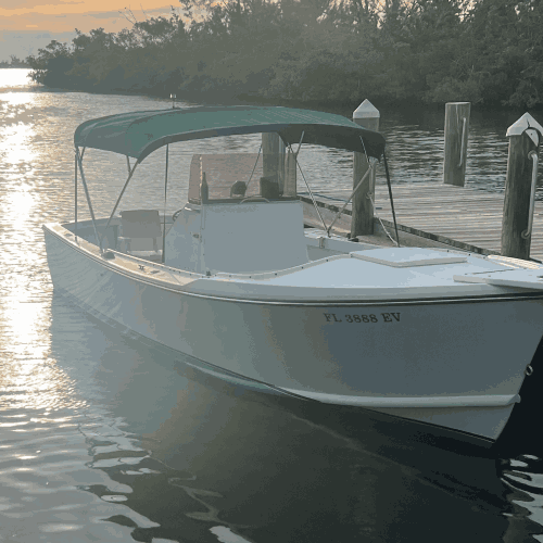 MEGALOPS is a 24-foot Morgan inboard, rigged in the traditional style used for Boca Grande Pass tarpon fishing. She is stable, dependable, and built to handle strong tides the way local anglers have done for generations.